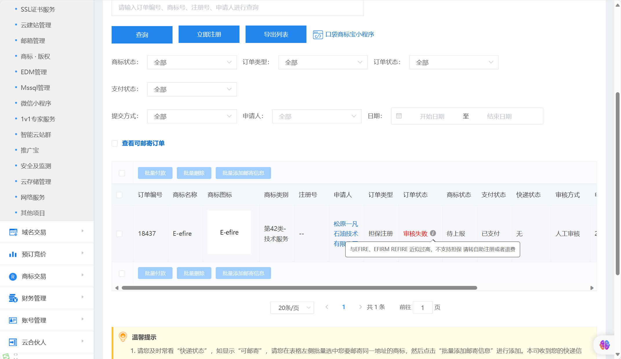问:,商标注册失败退费
