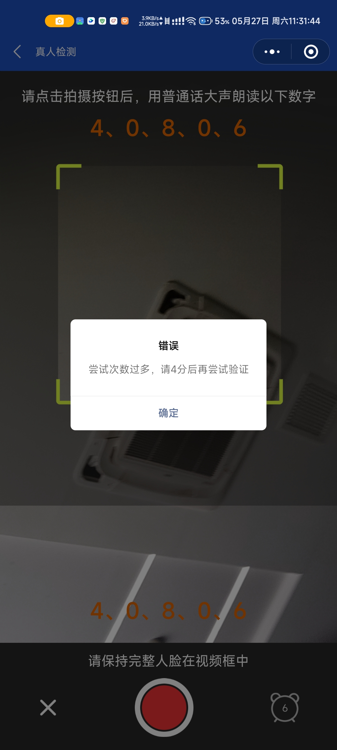 答:您好,请4分钟后重试,请保持周围光线清晰,人脸在视频框中,若还是无法在线识别。