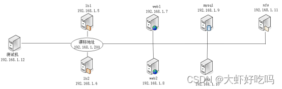 实验思路:根据拓扑图给出的信息,先搭建web服务器然后配置mysql、php、nfs,最后搭建代理服务器实现负载均衡。