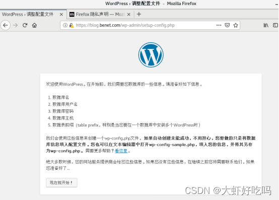 1. [root@web1 ssl_key]# cd /etc/nginx/conf.d/ 2. [root@web1 conf.d]# rm -rf default.conf 3. [root@web1 conf.d]# vim blog.conf 4. server { 5. listen 443 ssl; 6. server_name blog.benet.com; 7. ssl_certificate ssl_key/server.crt; 8. ssl_certificate_key ssl_key/server.key; 9. root /wordpress; 10. index index.php index.html; 11. 12. 13. location ~ \.php$ { 14. root /wordpress; 15. fastcgi_pass 192.168.1.10:9000; //php服务器主机 16. fastcgi_index index.php; 17. fastcgi_param SCRIPT_FILENAME $document_root$fastcgi_script_name; 18. include fastcgi_params; 19. } 20. } 21. server { 22. listen 80; 23. server_name blog.benet.com; 24. # rewrite .* https://blog.benet.com; //指定重定向(http转https) 25. # rewrite .* https://$host$request_uri redirect; 26. # rewrite .* https://$server_name$request_uri redirect; 27. rewrite .* https://$server_name$1 redirect; //四条都可以重定向,一条即可。 28. } 29. [root@web1 conf.d]# systemctl restart nginx