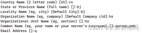 3. 生成证书,去掉私钥密码。(过程中会填写国家、省会、公司、邮箱等,随意填写即可)